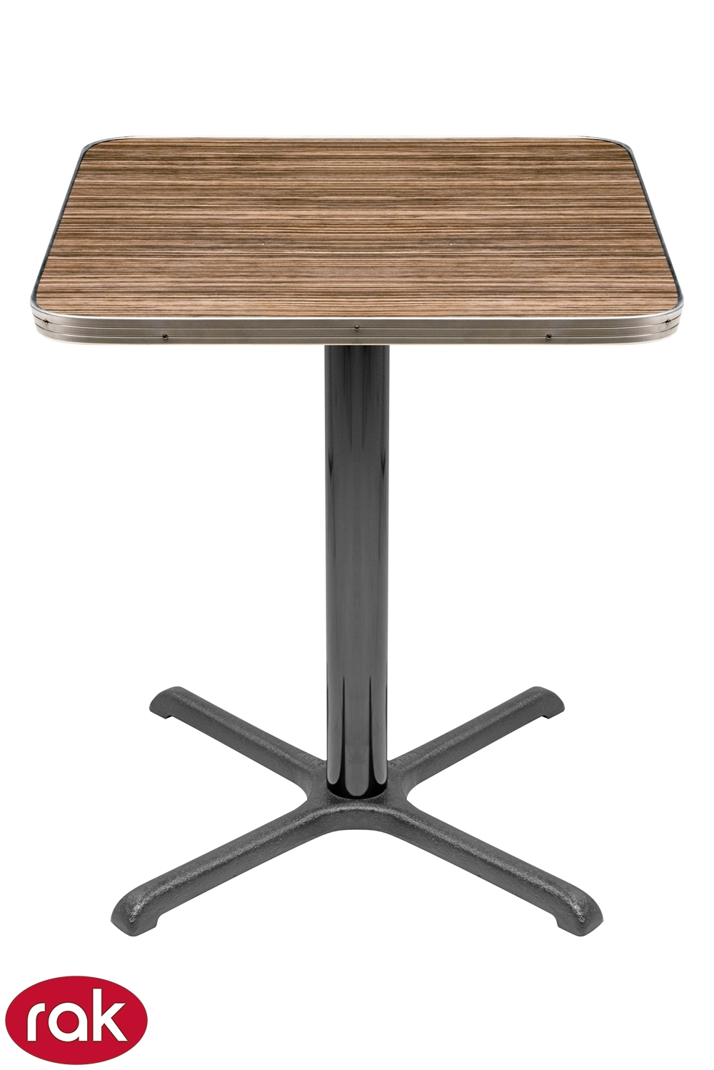 Robustas y de alta calidad, las mesas para restaurantes Rak son sólidas y resistentes. Las cubiertas se fabrican con laminados plásticos, madera o vinil en formas cuadradas, rectangulares o redondas, según las necesidades del proyecto. Los pedestales se pueden elegir en varios modelos, alturas y colores. Hay más de 600 combinaciones de mesas Rak que se adaptan a cualquier tipo de restaurante.